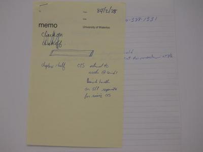 Memo and lined sheet pertaining to telecommunications configuration