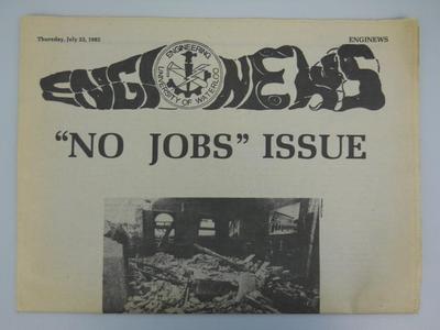 An issue of the University of Waterloo’s engineering newspaper, Enginews, titled the “No Jobs Issue”.