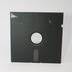 A black 3 1/2 inch floppy disk with the label removed from it.