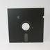 A black 3 1/2 inch floppy disk with the label removed from it.