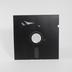 A black 3 1/2 inch floppy disk with the label removed from it.