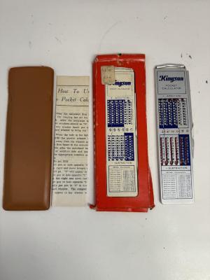 Released in 1965, the calculator was popular in the UK for business transactions. The calculator comes in a box and within a brown leather case, the device, and use instructions.