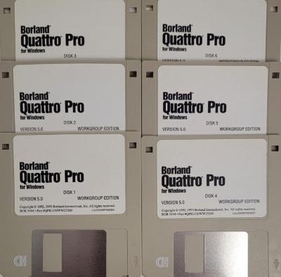 Set of 6 Bordland Quattro Pro for Windows Version 5.0 3.5" floppy disks from 1992,1993.