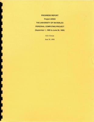 Progress Report for Project ARIES. The University of Waterloo Personal Computing Project (September 1, 1985 to June 30, 1988). D.D. Cowan.